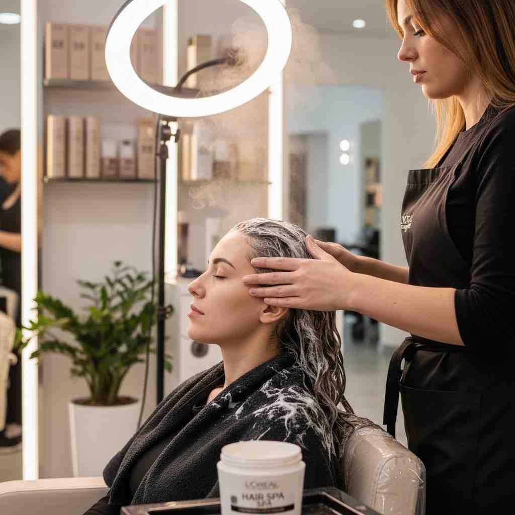 RozgaarLo’s L’Oréal Hair Spa Treatment is a nourishing and relaxing hair care treatment designed to deeply condition the scalp and hair. Using trusted L’Oréal professional products, this treatment helps restore moisture, strengthen hair, reduce dryness, and improve overall hair health and shine.